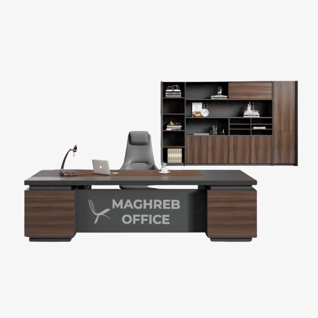 Ce bureau de direction avec bibliothèque intégrée est conçu pour les dirigeants et cadres souhaitant allier élégance, organisation et performance. Son design contemporain et sa bibliothèque assortie créent un espace de travail structuré et valorisant.